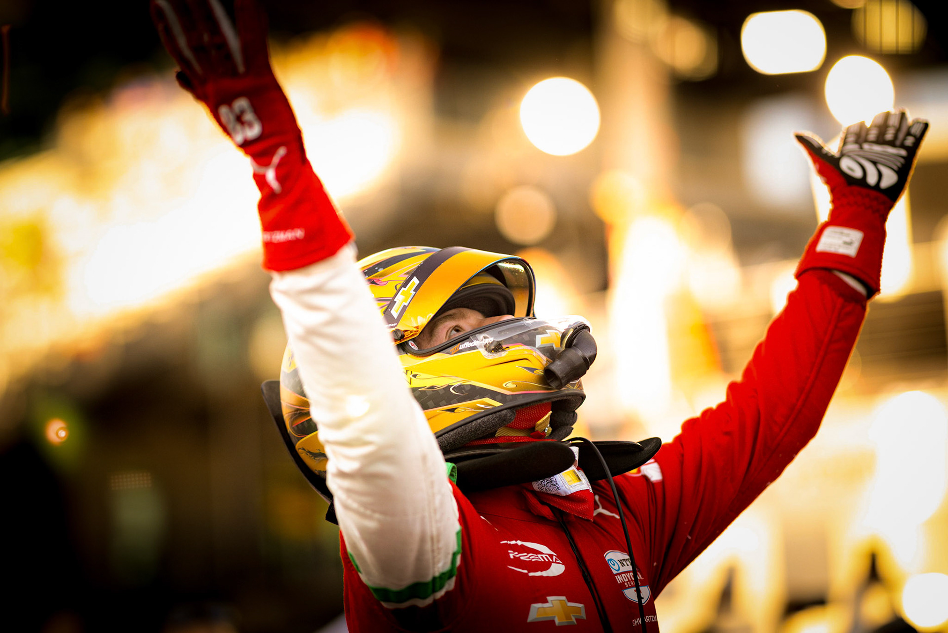 #21: Rinus VeeKay, Ed Carpenter Racing Chevrolet celebrates winning the GMR Grand Prix